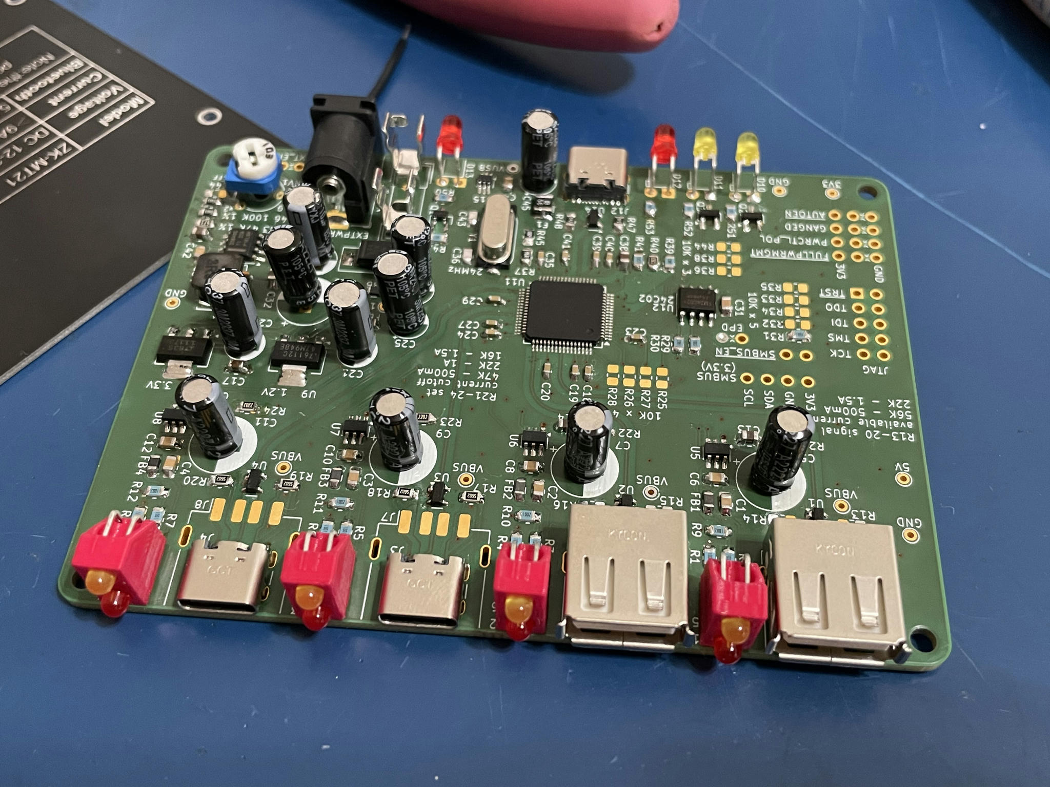This project was both a practical solution for me – I wanted a powered USB hub that wasn't a commoditized piece of garbage – and an opportunity to learn more advanced PCB design. This is my first four-layer board with impedance-controlled differential traces.
